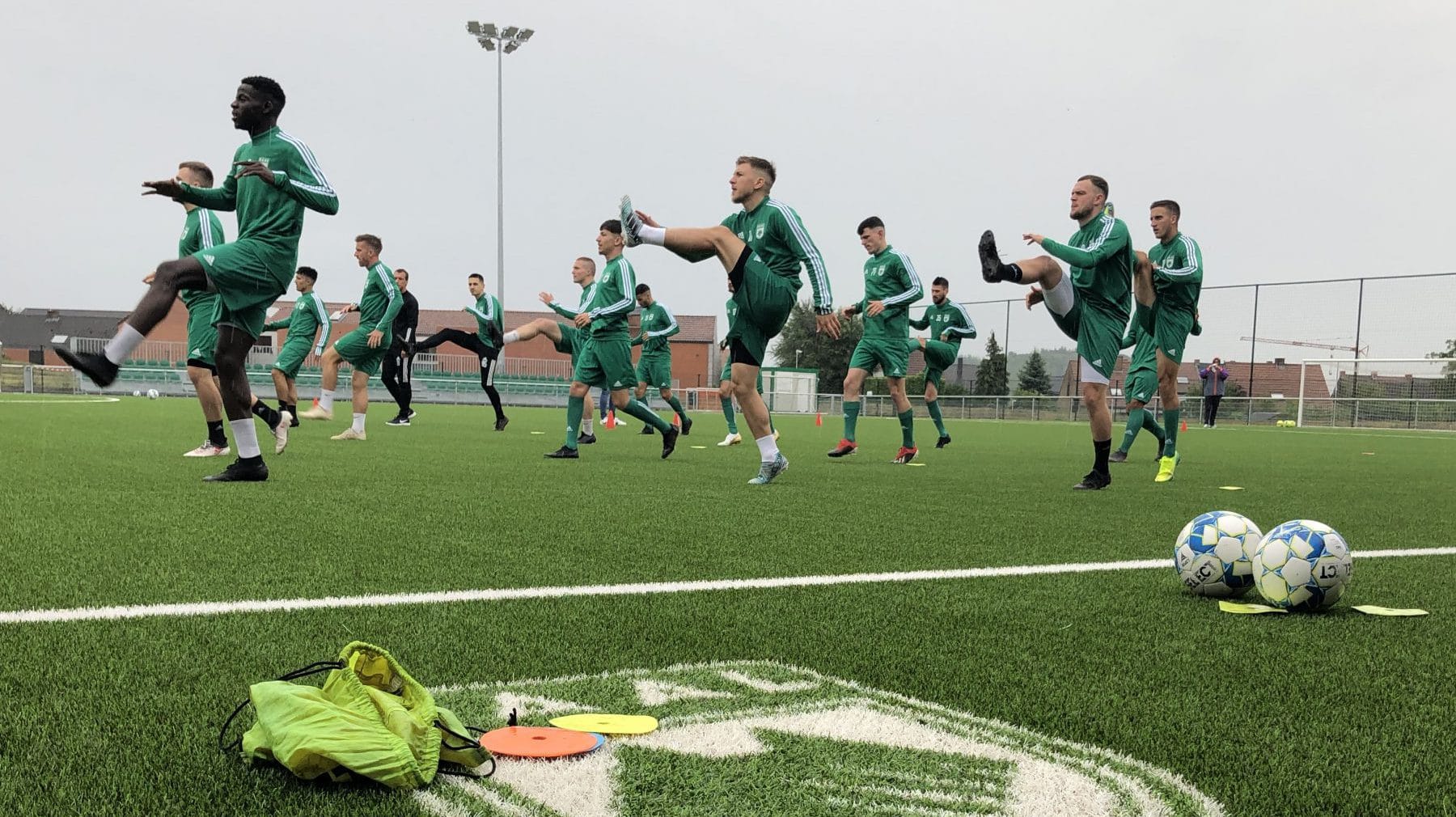 Outre la traditionnelle remise d’équipements, les discours de la direction et de l’entraîneur ou encore l’incontournable séance de photos, les Vert et Blanc ont foulé la pelouse de Strépy-Bracquegnies et tapé le ballon. Un première depuis 101 jours, soit plus de trois mois, depuis la dernière confrontation officielle face à Acren-Lessines. Et si la pluie était de la partie, elle n’a pas refroidi les ardeurs de la meute.