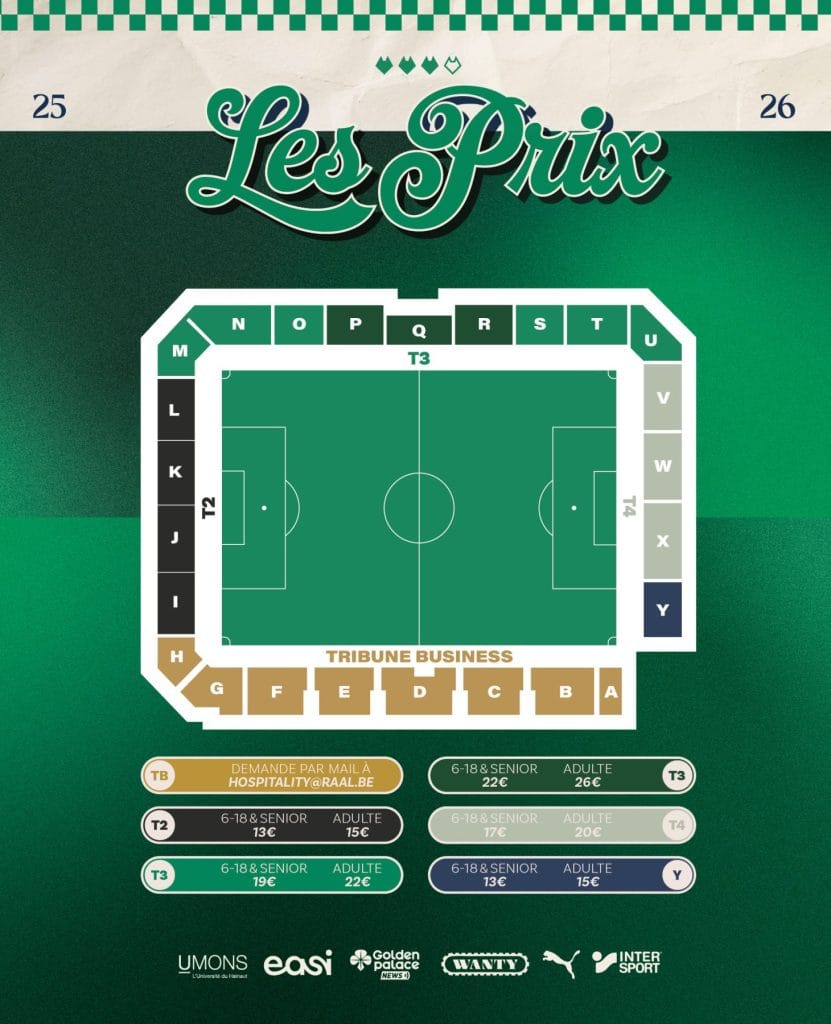 Un tarif majoré est d’application pour les rencontres face à Club Brugge, RSC Anderlecht, Standard, Charleroi, Antwerp et le KRC Genk.
