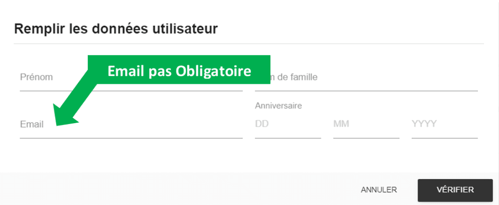 utilisateur ». Pour ces utilisateurs l’adresse email n’est pas obligatoire (sauf si vous souhaitez accéder à son compte ultérieurement).